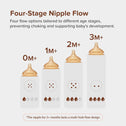 • 4 stage nipple flow: 4 flow options tailored to different age stages, preventing choking and supporting baby's development. Bpa and bps free.
