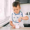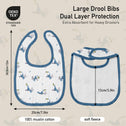 • GROW WITH YOUR BABY: Our bibs for boys girls with 2 sets of easily-fasten-free snaps, adjustable to create tailored comfort for your baby for every stage, from newborn to 36 months; Muslin teething baby bibs is 30.5 (L)*20 (W)cm/12*7.9 in, large front flap covers baby's chest, effortlessly protects baby's clothes while enhancing baby's cuteness