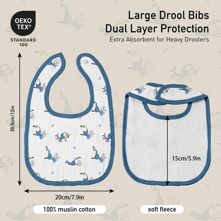 • IMPRESSIVELY ABSORBENT: Our Gllquen Baby muslin drool bibs are made of premium 100% cotton (muslin) and soft polyester fleece; The baby boy bibs are double-layered to help keep your baby clean all day, effectively blocking drool, spills and dirt from getting into your baby's clothing and protecting your baby's sensitive skin