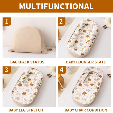 • Foldable and Portable: Unique design folds into a convenient backpack shape, making it perfect for travel and storage, ensuring your baby has a cozy spot wherever you go. (Patent Pending)