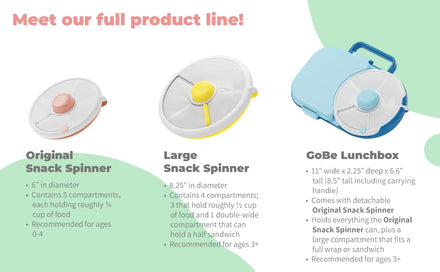• SNACK. SPIN. REPEAT - Make snacking a breeze with 5 snacking compartments with interactive button. Combine your snack bowls and cups into one light-weight, easy to use container!