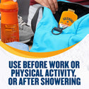 • Apply after showering or exercising to keep you cool, dry and comfortable