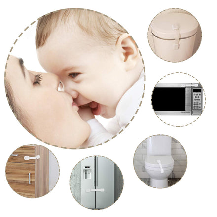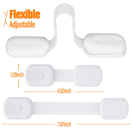 • MULTIUSE:Our child safety cabinet locks can adjust the strap length fit to cabinet,drawer,dresser oven,stove,fridge,wash machine,toilet seat,doors,trash can,freezer,slide doors,appliance,containers and more.Keep your baby,cat,dog away from the dangers in your home.
