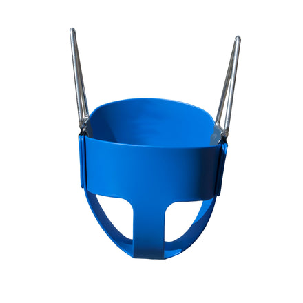 Details: The perfect swing for the smallest member of the family. The full bucket toddler swing – blue/blue by Gorilla Playsets includes galvanized bucket hangers and a polymer molded seat for added durability. This swing has built in UV protection so they won't heat up or fade in direct sunlight. The 60 in. Chains are coated in plastisol to help prevent pinches and snagging. The full bucket swing is recommended for ages between 2 to 5 years old and up to 50 lbs.