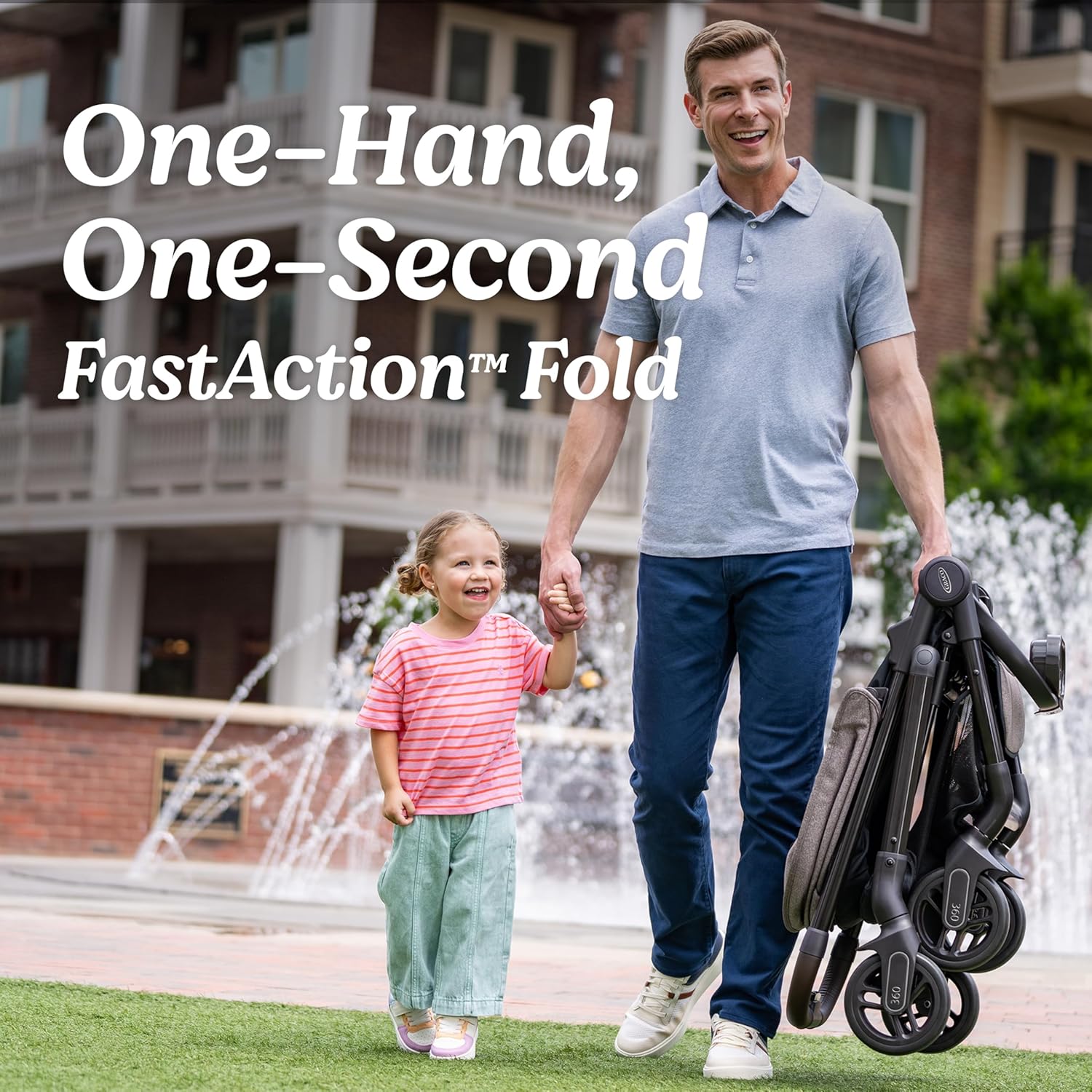 • The Graco signature FastAction Fold offers a one-second, one-hand fold for quick and easy storage and transportation