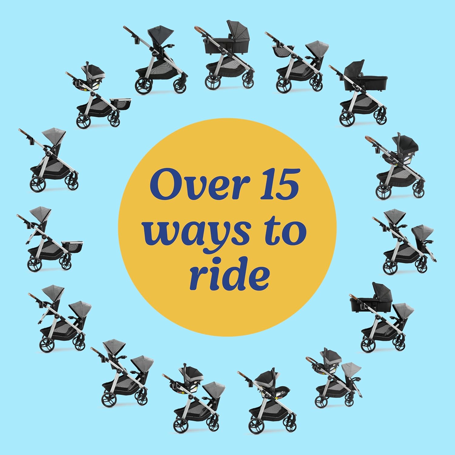 • Over 15 ways to configure the stroller for the versatility you need
