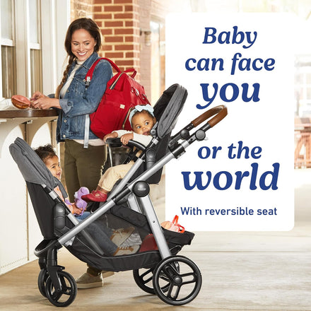 • Reversible stroller seat can face parent or the world, for just the right ride as baby grows