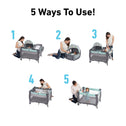 • Playard designed to grow with your child's varying stages from infant to toddler