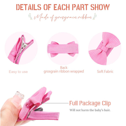 • 【HIGH QUALITY】Baby hair bows made from HIGH QUALITY grosgrain ribbon. Attached with fully lined hair clips, soft and durable. Easy to put in hair and take off without pulling baby’s fine hair.