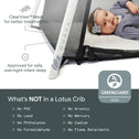 • 【LASTING COMFORT AND CONVENIENCE】The Lotus Crib portable playard is made with high-quality aluminum and non-slip rubberized feet, making it travel-ready and easy to assemble. It’s perfect for parents on-the-go who need a reliable and convenient portable travel crib. Plus, our portable toddler bed features a full-height ClearView mesh design for better visibility & airflow.