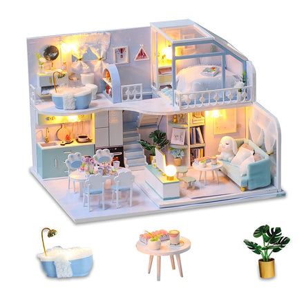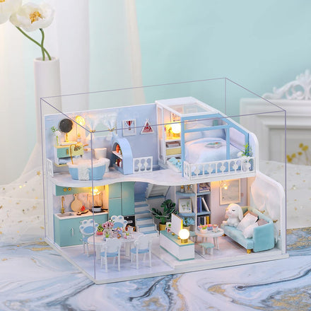 GuDoQi DIY Miniature Dollhouse Kit, Tiny House kit with Furniture, Miniature House Kit 1:24 Scale, Great Gift for Birthday Easter, Beautiful Blue Room