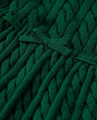 • FEATURES: Ribbon waist with non-functional bow, allover cable knit