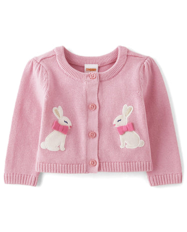 Gymboree,Embroidered Long Sleeve Shrug Cardigan,Pink Ribbon Bunny,0-3 Months