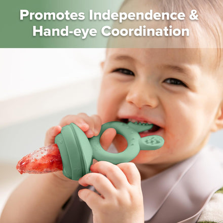 • PROMOTES INDEPENDENT FEEDING: Designed with an easy-to-hold ring suitable for tiny hands, our Feeder fosters self-feeding skills and enhances hand-eye coordination.