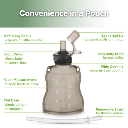 • π‹π„π€πŠππ‘πŽπŽπ… π‹πˆπƒ & π‘π„πŒπŽπ•π€ππ‹π„ 𝐒𝐓𝐑𝐀𝐖:The one-piece stopper + lid fits snugly into the Haakaa silicone pouch, keeping contents safe and secure. The straw is ideal for thinner liquids.