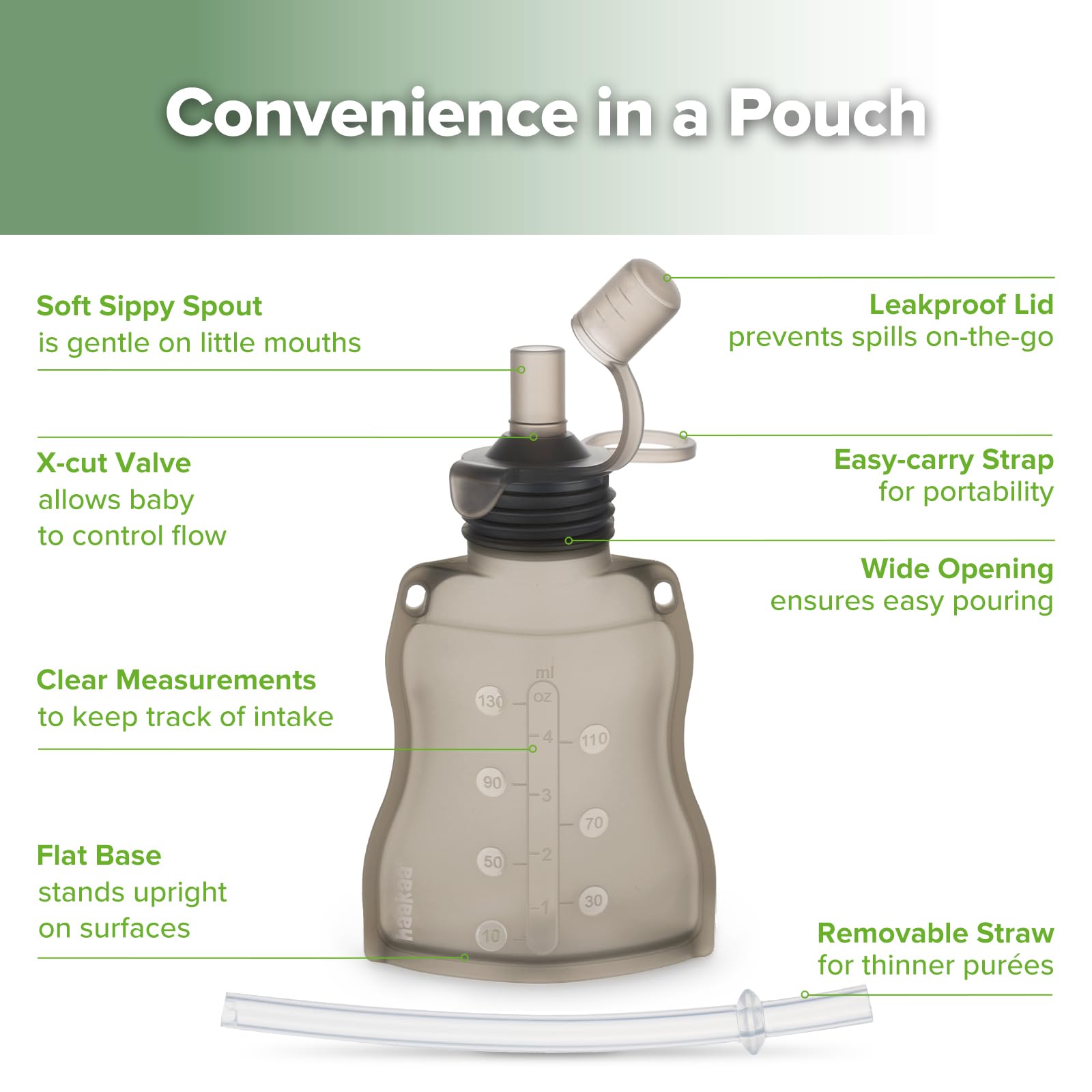 • 𝐑𝐄𝐔𝐒𝐀𝐁𝐋𝐄 ππŽπ”π‚π‡ π…πŽπ‘ π‡πŽπŒπ„πŒπ€πƒπ„ ππ€ππ˜ π…πŽπŽπƒ:These durable, 100% food-grade reusable baby food pouches are perfect for homemade baby food, purΓ©es, and more. Saves money and reduces plastic waste. These haakaa reusable pouches are one of the best refillable pouches for baby food.