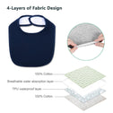 • SUPER SOFT AND ABSORBENT Waterproof Bibs:These baby bibs are designed with 4 layers, the surface and bottom layers are made of 100% organic cotton to ensure softness and absorbency, and the middle two layers are made of water-repellent polyester, 100% waterproof TPU layer to prevent spills from leaking out the other side and keep baby clothes dry.