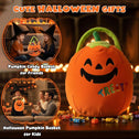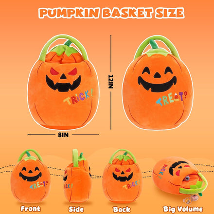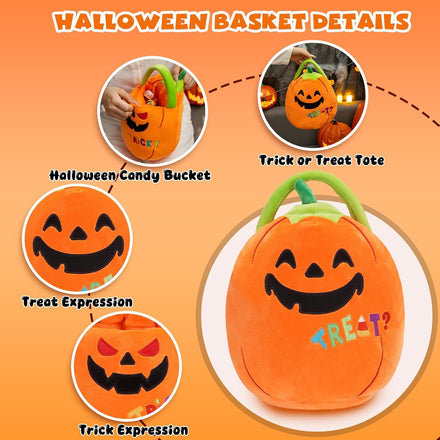 Halloween Plush Pumpkin Trick Or Treat Basket, Cute Pumpkin Stuffed Animal Candy Bucket, Halloween Party Favor Bags with Handles Plush Toys for Kids Toddlers Girls Boys