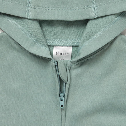 Featuring soft organic cotton and comfort seams that lay gently against the skin, Hanes® Pure Comfort™ French terry hoodie is designed with you and your little one in mind. Your baby will love the lightweight, French terry fabric that provides comfort from season to season and the no-drawcord hood that knocks the chill off. You’ll especially appreciate the expandable, adjustable cuffs and stretch side panels that promote longer wear as your baby grows. A protective zipper guard keeps baby safe and makes outfit changes easier for you. Offered in an array of sweet solids and playful prints for even more must-have options. Mix and match with Pure Comfort French Terry joggers for a double dose of adorable. HANES PURE COMFORT. Gentle-on-the-skin comfort solutions for your baby.