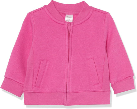 Designed with you and your baby in mind, layer it up with Hanes Zippin® baby fleece-lined full-zip jacket. Crafted to be a lightweight, breathable 4-way stretch garment has stretch side panels and adjustable cuffs, this adorable jacket allows you to get more growing time from each size. Available in four simple combined sizes including newborn to 6 months, 6 to 12 months, 12 to 18 months and 18 to 24 months, fitting baby longer. Our protective zipper and pocket make changing your baby easier while also keeping it away from their delicate skin. Perfect for roaming and playing, this lightweight jacket pairs well with Hanes Flexy® infant bodysuits and Hanes Zippin fleece-lined matching joggers. Available in an array of solids and playful prints for even more adorable options.
