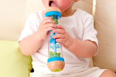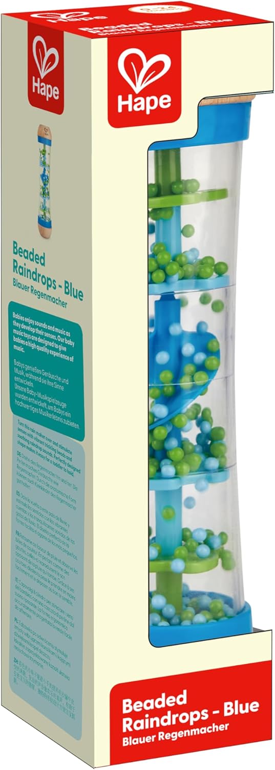 Product Description Music gets little toes tapping and happy hands clapping! Cultivating a love of sound, art, and rhythm is a childhood must, and with these classically designed instruments, it's even easier to help introduce kids to musical basics. Turn this rainmaker over and stimulate senses with vibrant trickling beads and soothing raindrop sounds. It is easy to grip so it can be easily switched into a shake and rattle activity. Great for sensory development. Develop Sensory Rain, rain, don't go away! The Beaded Raindrops Rainmaker is designed for small musicians to play to their heart's content. This innovative instrument provides children with hours of musical entertainment by imitating the gentle sound of rain with vibrant, trickling beads. Encourages children to develop rhythmic and melodic abilities as they discover the world of music at their fingertips. Durable child-safe paint finish and sturdy wood construction are hallmarks of Hape toys. Hape Toys is one of the world's largest producers of wooden toys. Hape is guided by the philosophy that the future belongs to our children and creates toys that inspire play, learning and exploration of the world we live in. All of the products meet the strictest international standards for quality and safety. Hape Toys represents the next generation of play. Brand Story By Hape