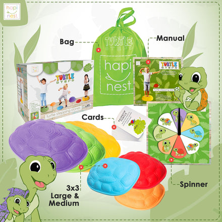 • Balance Stepping Stones For Kids: Turtle Steps Balance Stepping Stones are designed to enhance coordination and balance in children ages 3 to 8. Ideal for indoor or outdoor play, these stepping stones help kids develop essential gross motor skills while having fun.