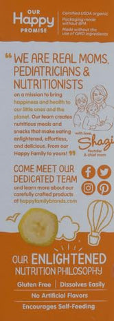 • HAPPY BABY: At Happy Baby Organics, we provide organic and delicious options for your baby's nutritional journey. We develop premium organic recipes perfectly matched with your child's age and stage. This is enlightened nutrition for every family.