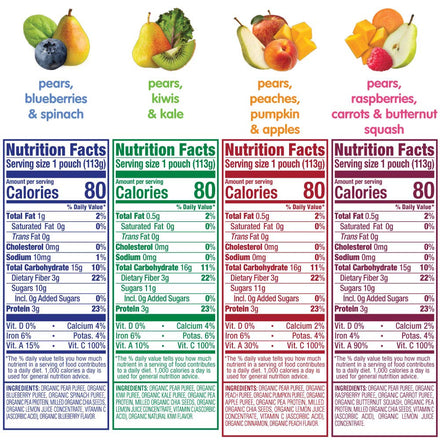 • FIBER & PROTEIN: Great for any toddler who is on the move, Fiber & Protein pouches are a mix of organic fruits & veggies. Fiber helps support the digestive system. Protein is a key building block for growing bodies. Easy to eat and easier to love!