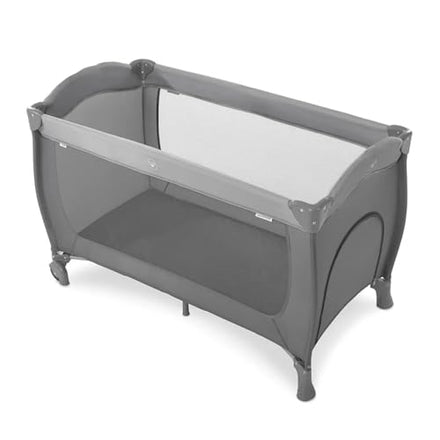 Hauck Sleep N Play Go Plus Portable Baby Travel Cot with Wheels, Mattress, Large Viewing Windows, and Side Exit for Babies and Toddlers, Gray