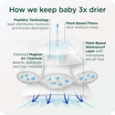 • Made to Perform: Our Diapers keep baby 3x drier to reduce irritations and rash, using our FlashDry technology and Clean Air Channels. Our super absorbent core delivers leak protection day and night.