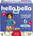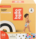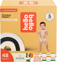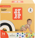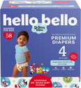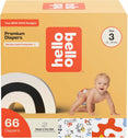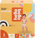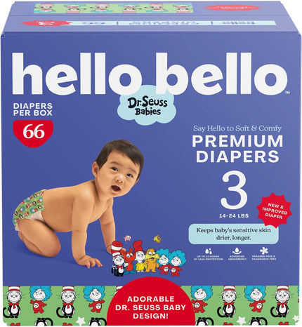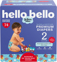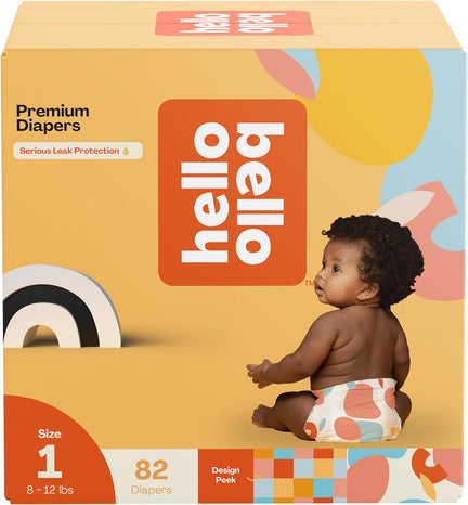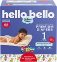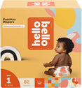 Hello Bello Premium Baby Diapers, Infant Size 1, 82 Count - Hello Bello Premium Baby Diapers are designed by parents, so we know first-hand that preventing leaks and blowouts is a must. Been there, done that, don't want to deal with it. We also wanted to create a diaper with ingredients we could be proud of, that was soft on sensitive skin, and was made with just as much consideration for the planet we live on as the babies we love - all at an affordable price. So that's just what we did. Featuring premium, thick leg cuffs for serious leak protection and an advanced core that quickly wicks away moisture to help minimize conditions that lead to irritation. These diapers stay snug when soiled, reducing sag and keeping a secure and comfy fit. Includes (1) 82ct club box of diapers in balloon buddies & crosshatch cuties for newborns and infants (Size 1).