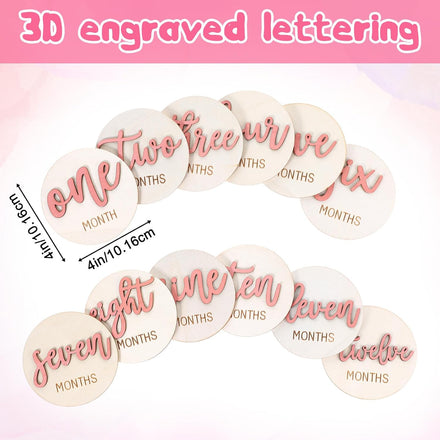 Category: Announcement Card Color: Pink Material: Poplar Function: The set contains 6 double-sided monthly milestone discs. Small and portable, a precious souvenir to record your baby's growing memories. It covers all months from January to December, recording every important moment of your baby's first year. These discs are the perfect way to record and celebrate your baby's growth. The slate blue font and wooden material give the product a natural and tranquil texture, making it a beautiful work of art. Whether placed on a bookshelf or hung on the wall, it will complement any home decoration. Square size: 3.94 × 3.94 × 0.3 inches/10 × 10 × 0.75 cm Packing list: 6pcs × Announcement Card