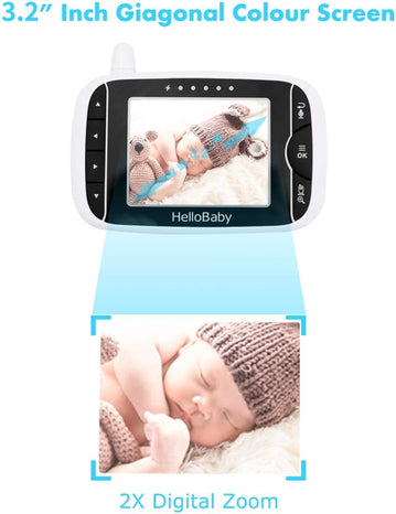 HelloBaby Baby Monitor with Remote Pan-Tilt-Zoom Camera and 3.2'' LCD Screen, Infrared Night Vision (Black)