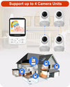 • Panoramic Coverage & Clear IPS Screen:This pan-Tilt-Zoom baby camera rotates 318° Panoramic+120° Vertical with 2X zoom to track crawling or walking. 4" IPS screen delivers 178°wide view and true-color imaging
