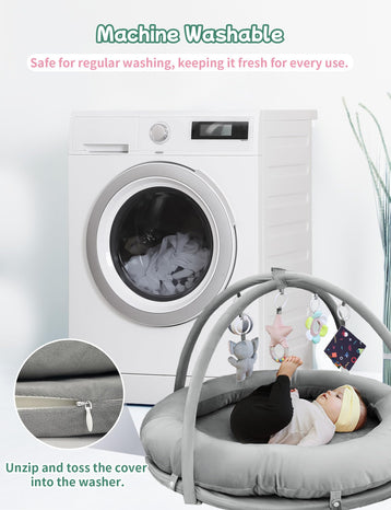 • Easy Setup and Maintenance - Assembling and disassembling our baby gym takes just 2 minutes, with no tools required. The mat is easy to clean—simply machine wash or spot clean to ensure a safe and clean play area for your baby.