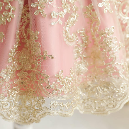 The combination of translucent lace sleeves and floral embroidery drapes elegantly on girls' arms, adding elegance. It's just a princess dress.