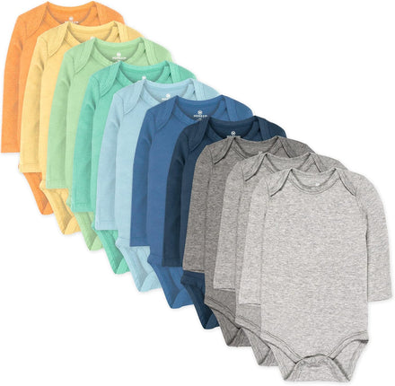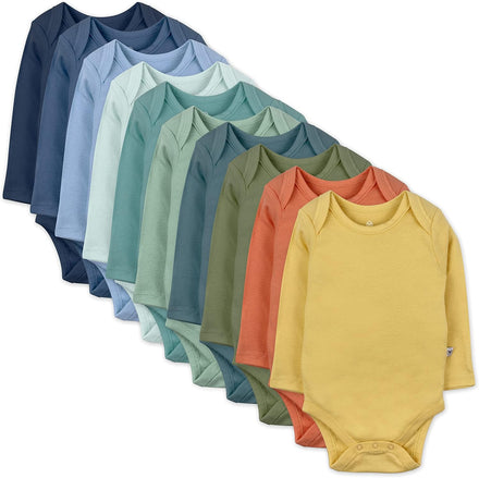HonestBaby 10-Pack Long Sleeve Bodysuits One-piece 100% Organic Cotton for Infant Baby Boys, Girls, Unisex