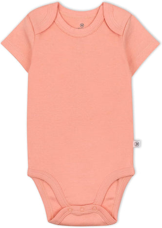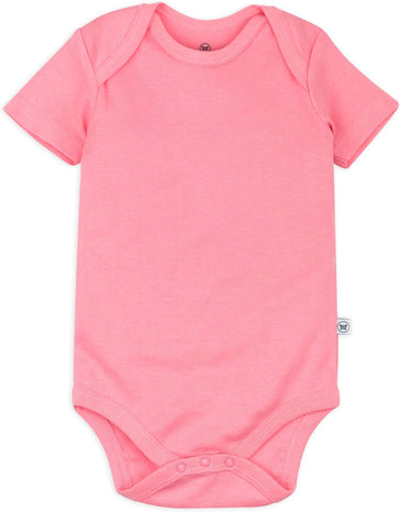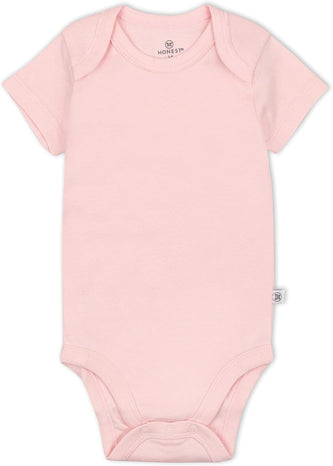 Short sleeve bodysuits are the baby essentials you can't do without. Available in a 5-pack, our comfy bodysuit has an envelope neck that expands and nickel-free snaps at the bottom to make it easy to get on and off. Made from 100% organic cotton, this short-sleeve bodysuit is just right to wear on its own or layered for super-cute styles. Perfect baby clothes to use as blanks for a baby shower game or just to have in bulk so there is always a clean bodysuit on-hand when you need it. Honest makes organic cotton baby clothes for girls, boys and the little one that hasn't yet been revealed.