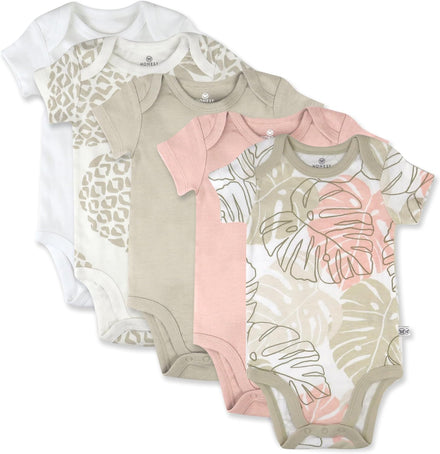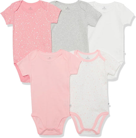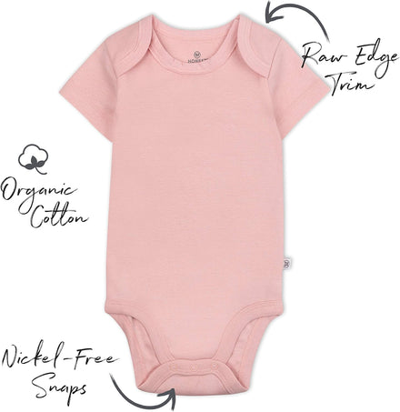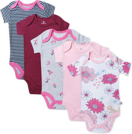 HonestBaby baby-girls 5-pack Short Sleeve Bodysuits One-piece 100% Organic Cotton for Infant Baby Girls