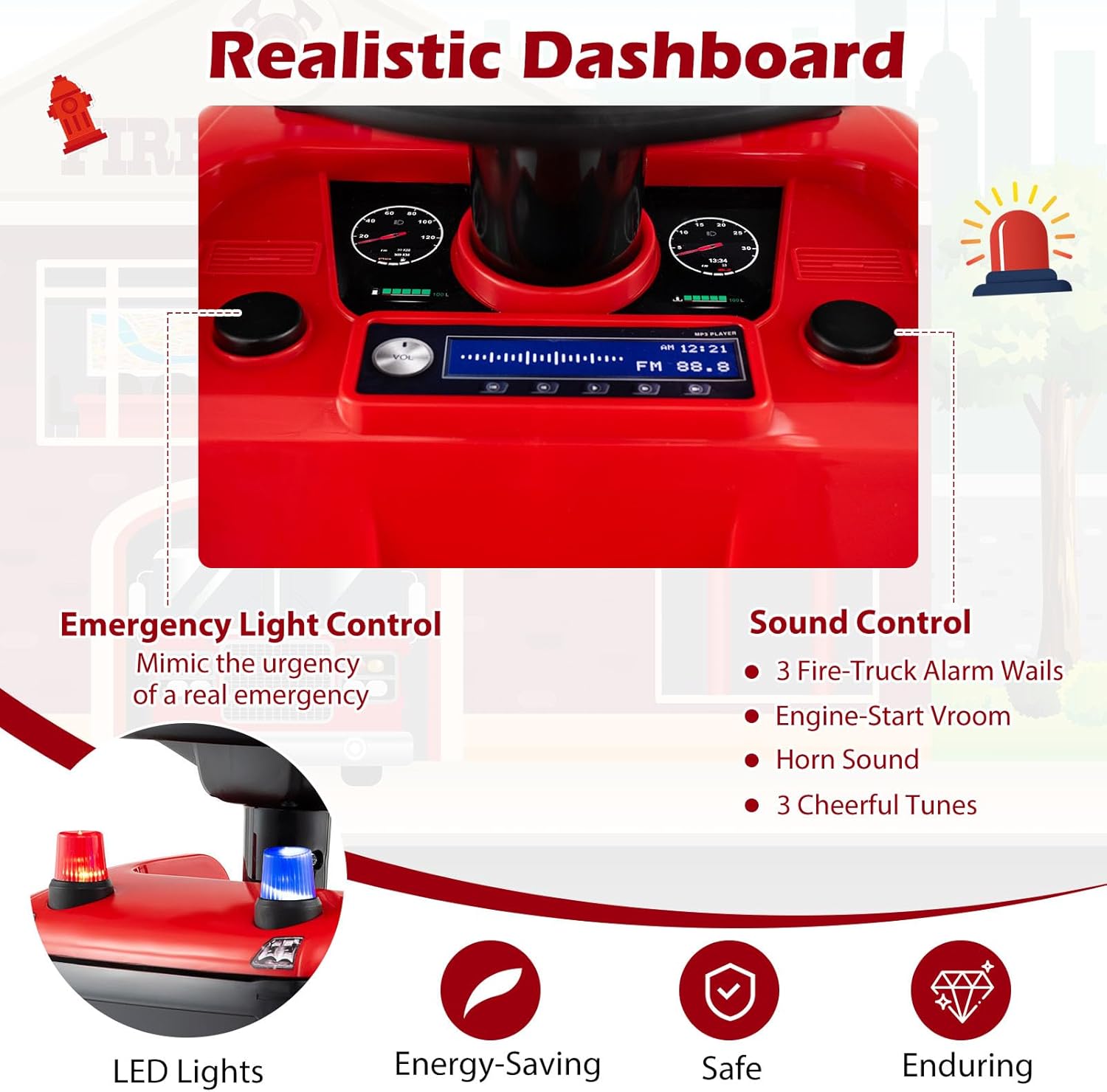 - Interactive Lights & Sounds: Equip your little hero with the excitement of real-life emergency scenarios! This ride on push car features vibrant emergency LED lights, 3 fire-truck alarm wails, engine-start vroom, horn sound, and 3 cheerful tunes to keep the amusement going. Note: It requires 4 x 1.5V AA batteries (not included).