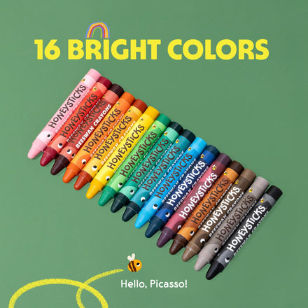 Honeysticks Jumbo Crayons (16 Pack) - Non Toxic Crayons - 100% Pure Beeswax and Food Grade Colors - 16 Bright Colors - Large, Easy to Hold and Use - Preschool Art Supplies for Toddlers/Kids 3-5, 4-8