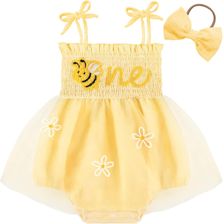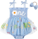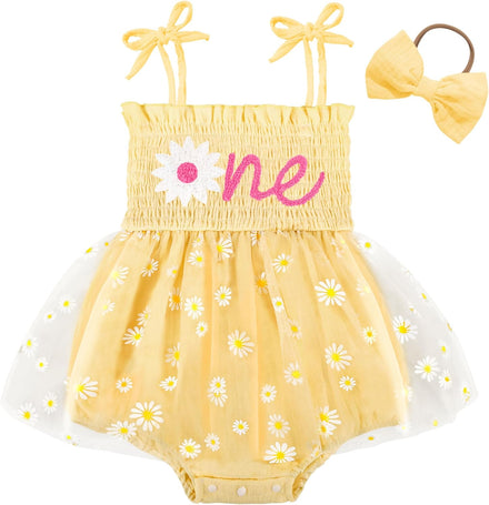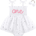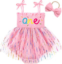 HONGTEYA Baby Girl 1st Birthday Outfit Girl First Birthday Clothes One Year Old Gifts Lace Romper Tulle Summer Newborn Dress