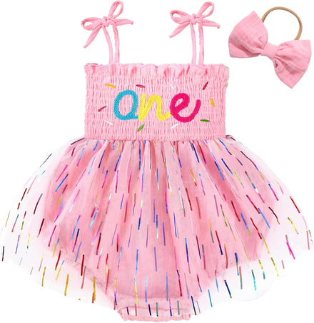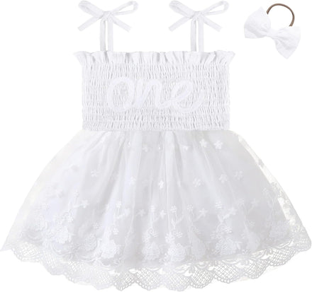 • 【Exquisite Design】Our baby girl dress is exquisitely designed, with the letter "one" embroidered print printed on the chest of the camisole dress. The outer layer of the dress hem is made of exquisite embroidered mesh, adding a delicate and elegant charm, making your girl sweeter and more charming