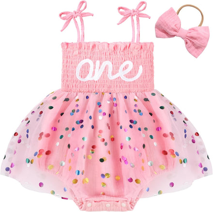 • 【Baby Girl First Birthday Dress】Our baby girl outfits includes a camisole pleated skirt and a bowknot headband, with a sweet and charming appearance that makes your girl look like a Elegant princess. Our shiny first birthday outfit girl will be the perfect outfit for a 1-year-old baby's birthday