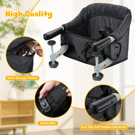 Hook On Chair with Removable Dining Tray,Portable Table High Chair, Folding Baby Chair with Storage Bag for Indoor/Outdoor(Black)