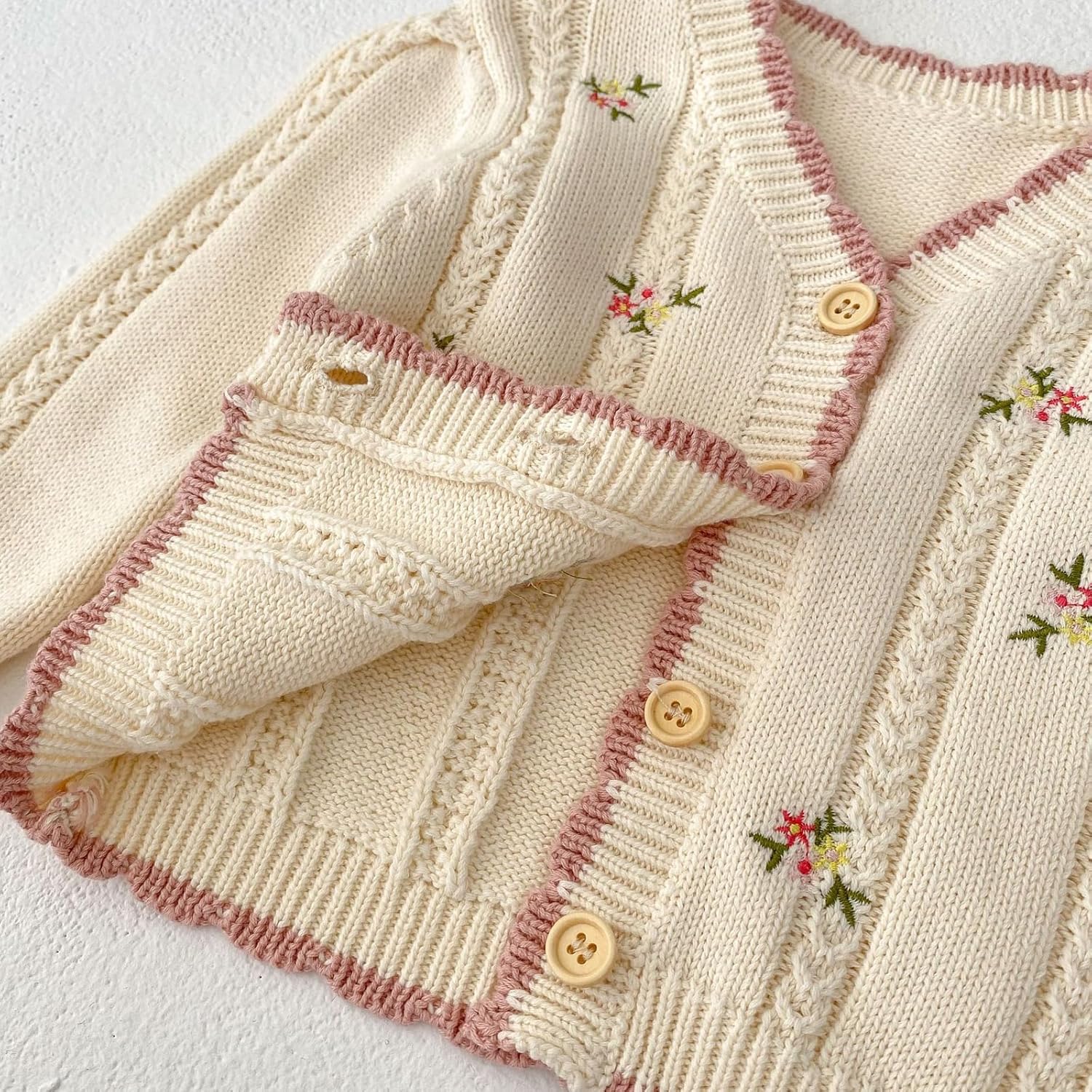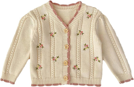 - Keep your little one cozy and stylish in this HOOLCHEAN Baby Girls Cardigan Sweater featuring small floral embroidery, perfect for spring and fall seasons.