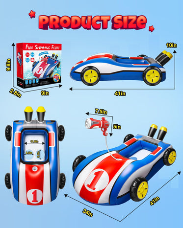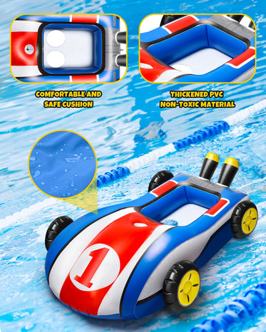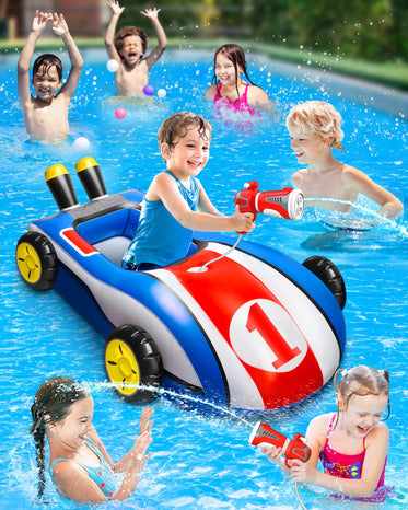 • 2024 NEW KART POOL FLOATS: Newly designed kart-shaped pool floats for kids, equipped with a build-in water gun, bringing endless joy to pool games. Drive the pool toys into action and have a blast in pool games! The floats size is suitable for kids and toddlers aged 3-8, inviting more kids to join in on the fun