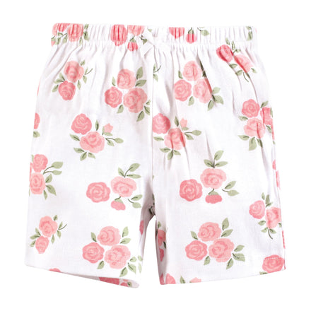 Hudson Baby Unisex Baby Shorts Bottoms 4-Pack, Soft Pink Roses, 9-12 Months