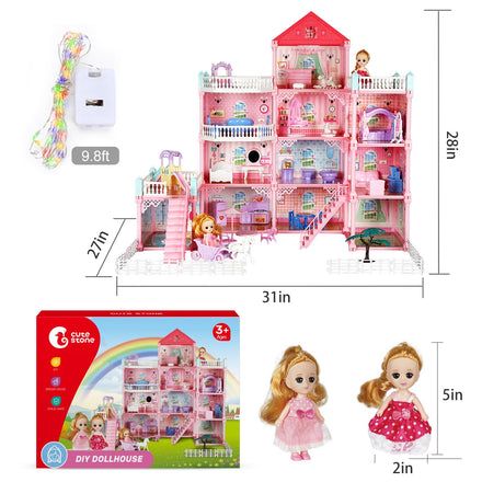Huge Doll House Dollhouse with Light, Gift for Girls