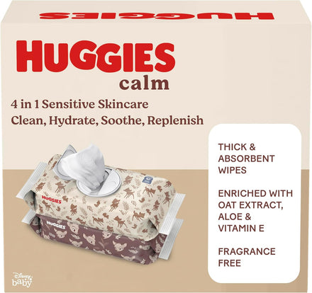 Feel confident that you are giving your baby’s sensitive skin a gentle clean with Huggies Calm Unscented Baby Wipes. These baby wipes are moisturizing and made with a touch of oat extract, aloe and vitamin E. Made to be 20% thicker*, these baby wipes help to provide an ultra-gentle clean when compared to a thinner wipe. These diaper wipes have the Seal of Acceptance from the National Eczema Association, and are hypoallergenic, dermatologist-tested and pH-balanced to help maintain healthy skin. They are also free of phenoxyethanol, parabens, fragrances, and dyes. Plus, with 1-Handed Dispensing, it’s easy to grab wipes single-handedly, when you have your hands full! Featuring Disney's Bambi designs that are as cute as your baby, Huggies Calm wipes are the perfect choice to pair with your Huggies diaper! (*vs Huggies Simply Clean)